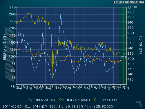 騰落レシオ(25日):82.62% (-0.95)