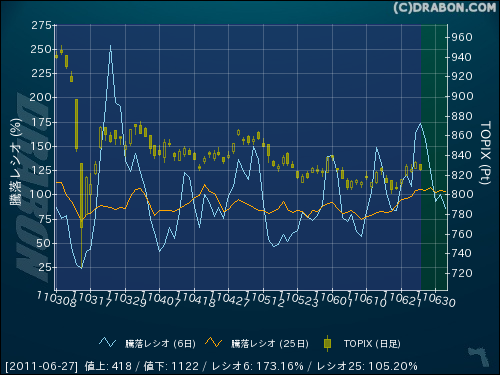 市況(東証1部) (2011/06/27)