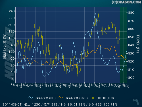 市況(東証1部) (2011/08/01)