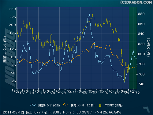 騰落レシオ(6日):53.08% (-1.77)