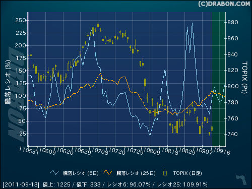 騰落レシオ(6日):96.07% (+31.77)