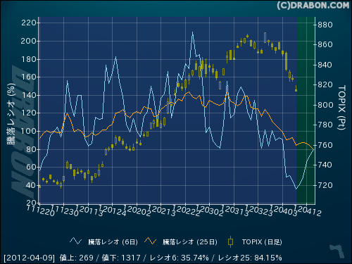 騰落レシオ(6日):35.74% (-9.91)