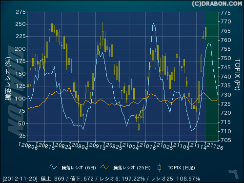 騰落レシオ(6日):197.22% (+46.34)