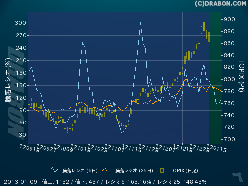 騰落レシオ(6日):163.16% (-1.06)