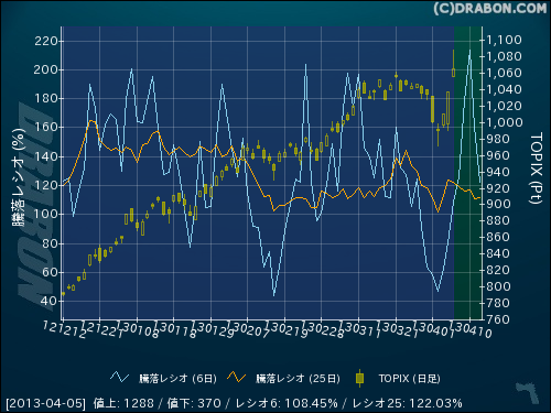 騰落レシオ(6日):108.45% (+28.03)