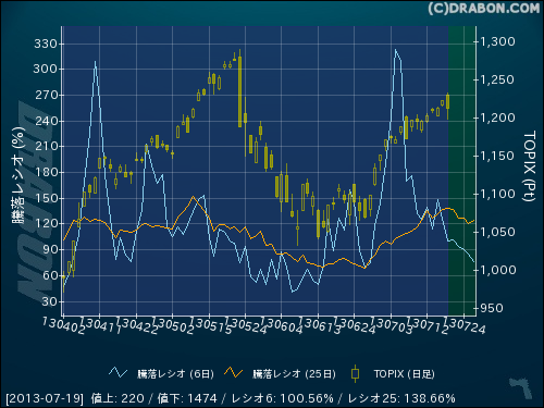 騰落レシオ(6日):100.56% (-25.41)