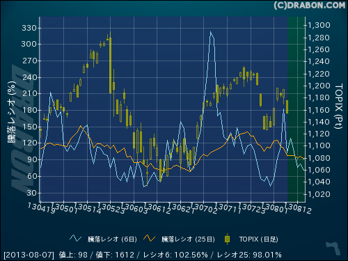 騰落レシオ(6日):102.56% (-80.47)