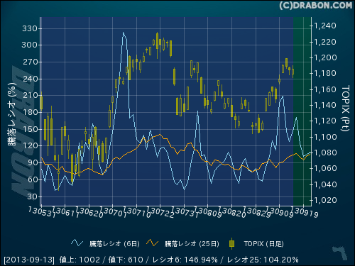 騰落レシオ(6日):146.94% (+18.10)