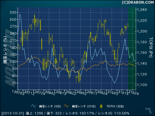 騰落レシオ(6日):183.17% (+13.80)