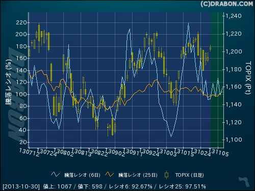 騰落レシオ(6日):92.67% (+1.23)
