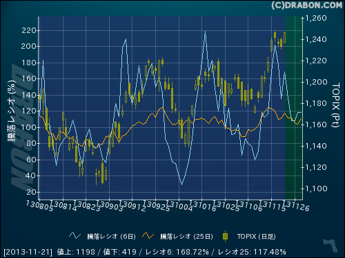 騰落レシオ(6日):168.72% (+33.28)