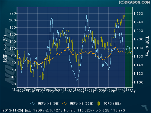 騰落レシオ(6日):116.52% (-7.42)