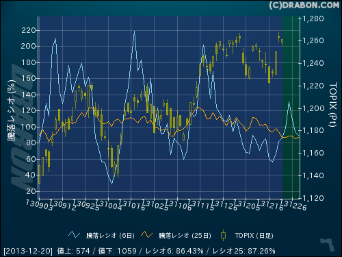 騰落レシオ(6日):86.43% (+4.13)