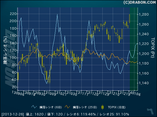 騰落レシオ(6日):119.46% (+14.06)