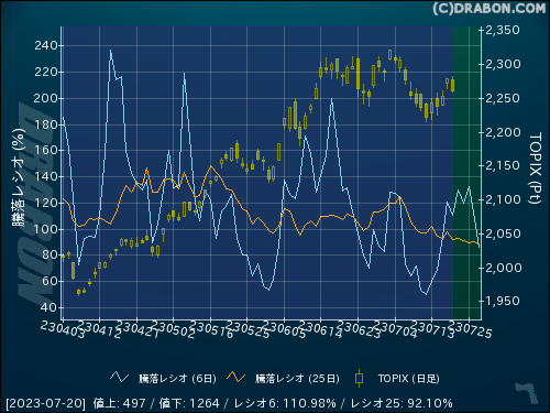 騰落レシオ(6日):110.98% (-10.11)
