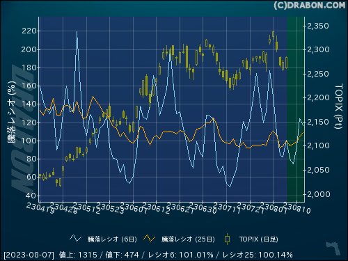 騰落レシオ(6日):101.01% (+18.83)