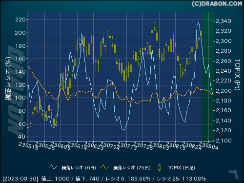 騰落レシオ(6日):189.66% (-26.65)