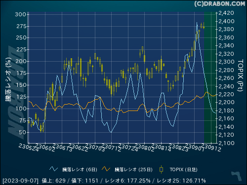 騰落レシオ(6日):177.25% (-32.17)