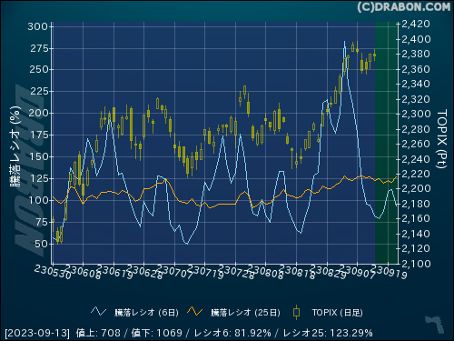 騰落レシオ(25日):123.29% (-3.33)