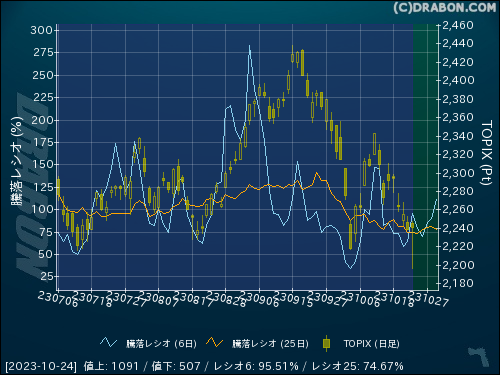 騰落レシオ(6日):95.51% (+30.97)