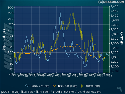 騰落レシオ(25日):75.74% (+1.27)