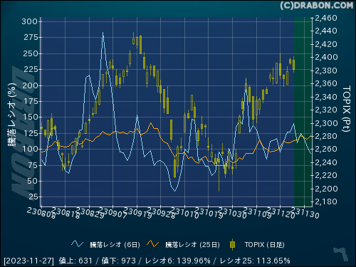 騰落レシオ(6日):139.96% (+12.95)
