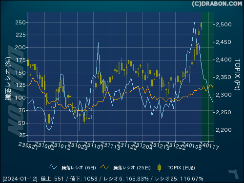騰落レシオ(6日):165.83% (-43.22)