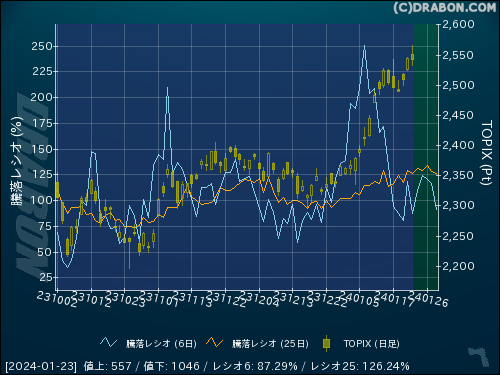 騰落レシオ(25日):126.24% (-2.79)