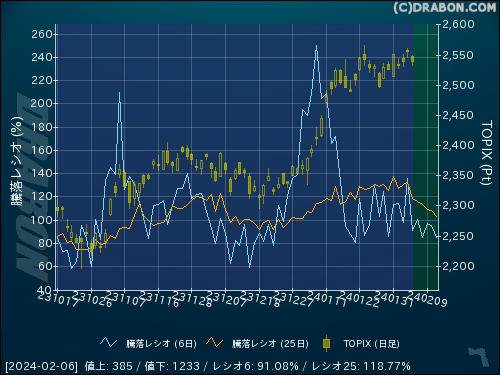 騰落レシオ(6日):91.08% (-44.63)