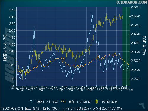 騰落レシオ(6日):103.82% (+12.73)