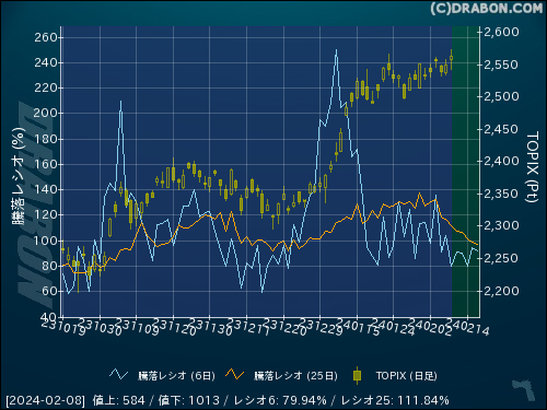騰落レシオ(6日):79.94% (-23.87)