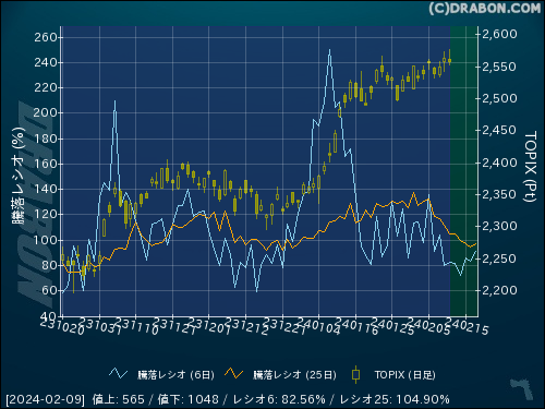 騰落レシオ(6日):82.56% (+2.62)