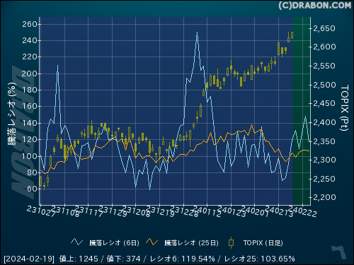 騰落レシオ(25日):103.65% (+6.84)