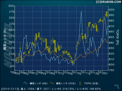 騰落レシオ(6日):214.73% (+36.14)