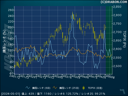 騰落レシオ(6日):125.72% (-69.94)