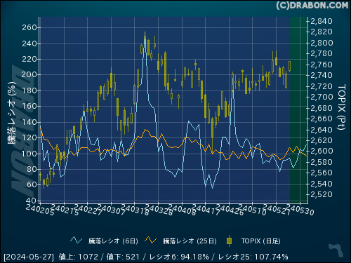 騰落レシオ(6日):94.18% (+2.80)