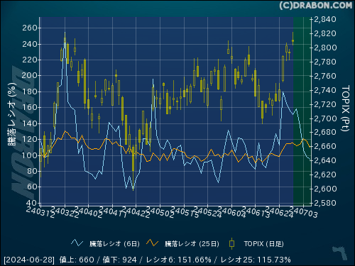 騰落レシオ(6日):151.66% (-5.76)