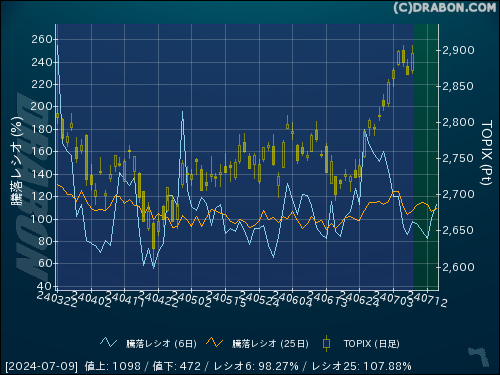 騰落レシオ(6日):98.27% (+11.99)