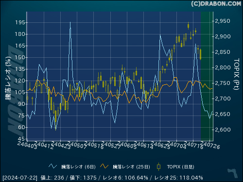 騰落レシオ(6日):106.64% (-20.80)