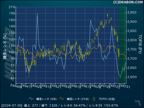 騰落レシオ(6日):54.47% (-14.71)