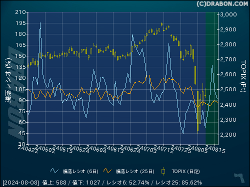 騰落レシオ(25日):85.62% (-2.52)
