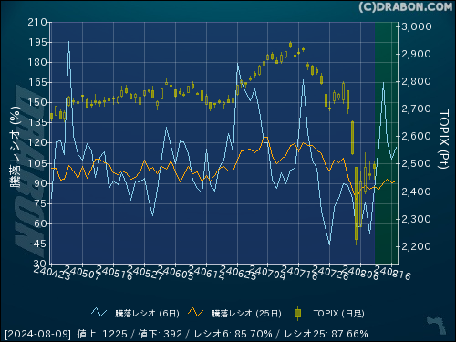騰落レシオ(6日):85.70% (+32.97)
