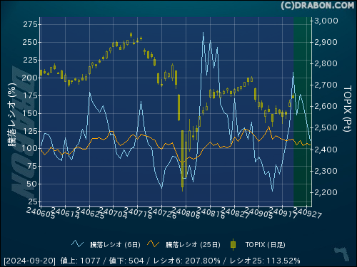 騰落レシオ(6日):207.80% (+74.72)