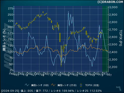 騰落レシオ(6日):189.94% (+35.30)