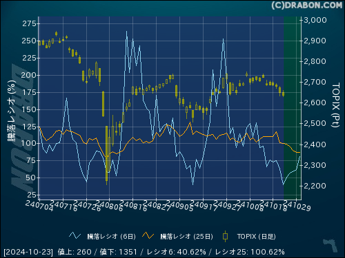騰落レシオ(6日):40.62% (-22.87)