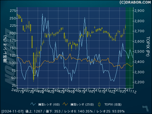 騰落レシオ(6日):140.35% (-1.26)