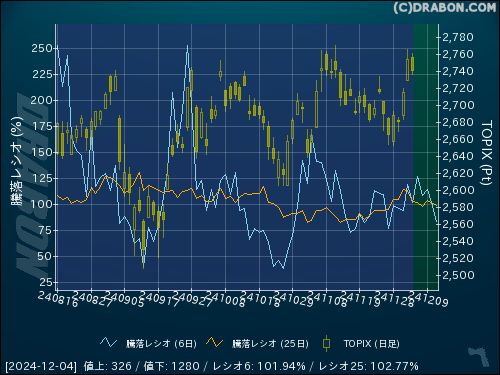 騰落レシオ(25日):102.77% (-10.33)