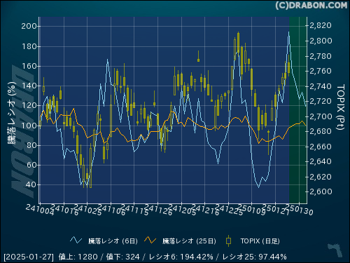 騰落レシオ(25日):97.44% (+6.29)