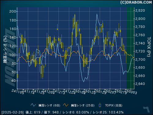 騰落レシオ(25日):103.43% (-7.10)