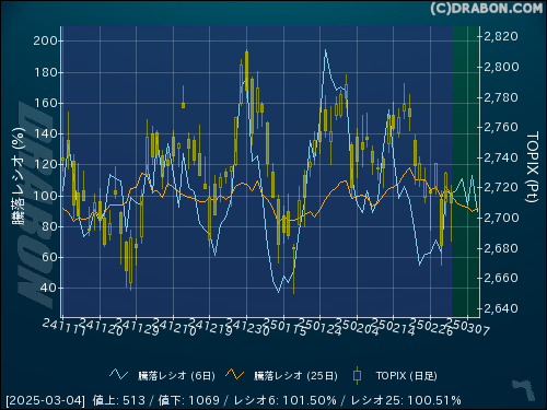 騰落レシオ(6日):101.50% (-1.74)
